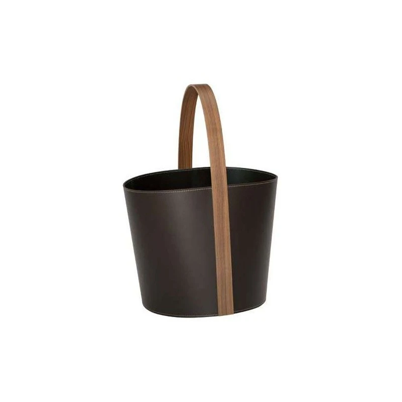Cesto Madame Tonin Casa è sinonimo di alta qualità e artigianalità di stile moderno. Realizzato in cuoio e impreziosito da un ampio manico lavorato a mano in legno termo curvato. Perfetto come porta riviste.