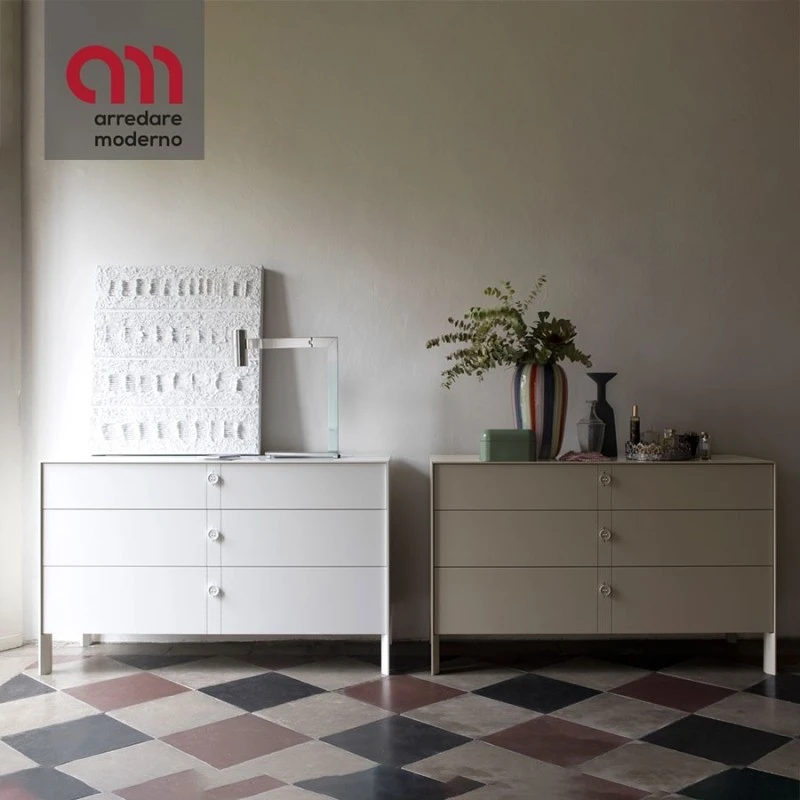 Another Day di Capo D’opera è un comò affascinante per la zona notte, perfetto sia da solo che in combinazione con altri mobili, con proporzioni semplici e uno spirito accogliente. Le gambe si integrano armoniosamente nella struttura, creando un’unità elegante con i fianchi. La versatilità è una caratteristica chiave di questo mobile, poiché il numero e le dimensioni dei suoi cassetti possono essere personalizzati per adattarsi alle esigenze dello spazio. Questo lo rende ideale sia come comodino che come cassettiera o comò. Un tocco di originalità è dato dalla possibilità di personalizzare i frontali dei cassetti con una fila di bottoni in Solid Surface, cuciti a mano con filo di cotone, disponibile in una vasta gamma di colori.
