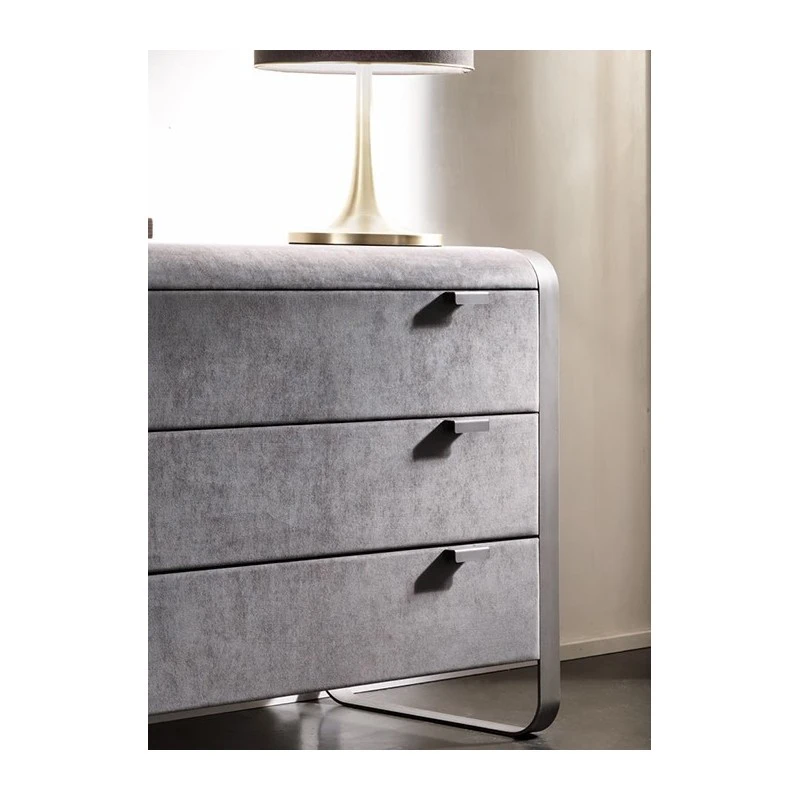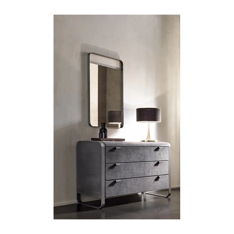 Elvis di Cantori è un comò moderno con cassetti, a richiamo frenato, e il top arrotondato in legno e completamente rivestiti in pelle o ecopelle. La struttura in metallo può essere finita in bronzo o in ferro patinato per renderlo “vintage”. Il comò Elvis è l’ideale per la camera da letto dove insieme ai comodini, crea un gruppo notte moderno.