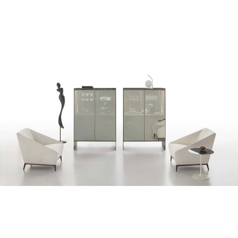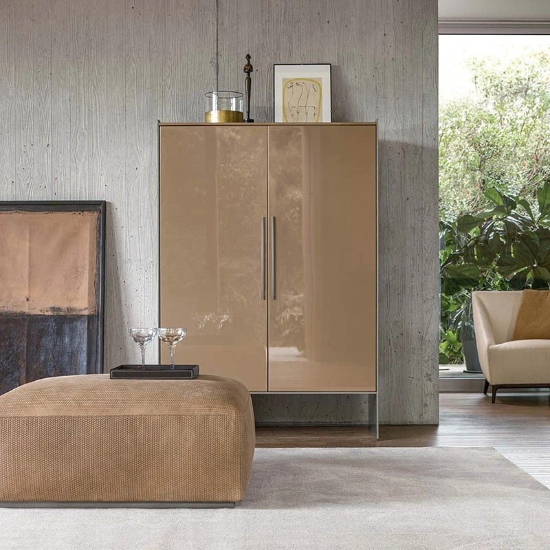 Bristol Bar è un complemento d’arredo by Alivar che reinterpreta il lusso per uno stile contemporaneo. Il mobile Bar è proposto in due versioni: con ante in vetro riflettente con teaio titanio o bronzo e interno in noce; con ante e top dello stesso colore in MDF laccato lucido e interno in noce. I fianchi e le maniglie sono in alluminio nella finitura bronzo o titanio. Il vano interno è attrezzato con frigo bar dalla capacità di 35 litri, classe di consumo A+++, con ripiano superiore in vetro e ripiano rivestito in cuoio e con luce interna a LED. Bristol Bar è un mobile bar/credenza originale e funzionale adatto per aredare sale di ristoranti, hotel e locali all’avanguardia che non rinunciano allo stile.