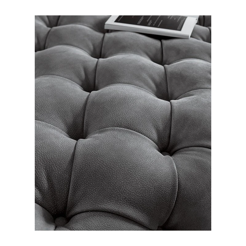 Rollking Désiré divano 2 posti dal design evergreen caratterizzato dalla straordinaria espressione artigianale della lavorazione capitonnè che esalta i volumi rigorosi. Rivestimento in tessuto o pelle e piedini in polipropilene nero.