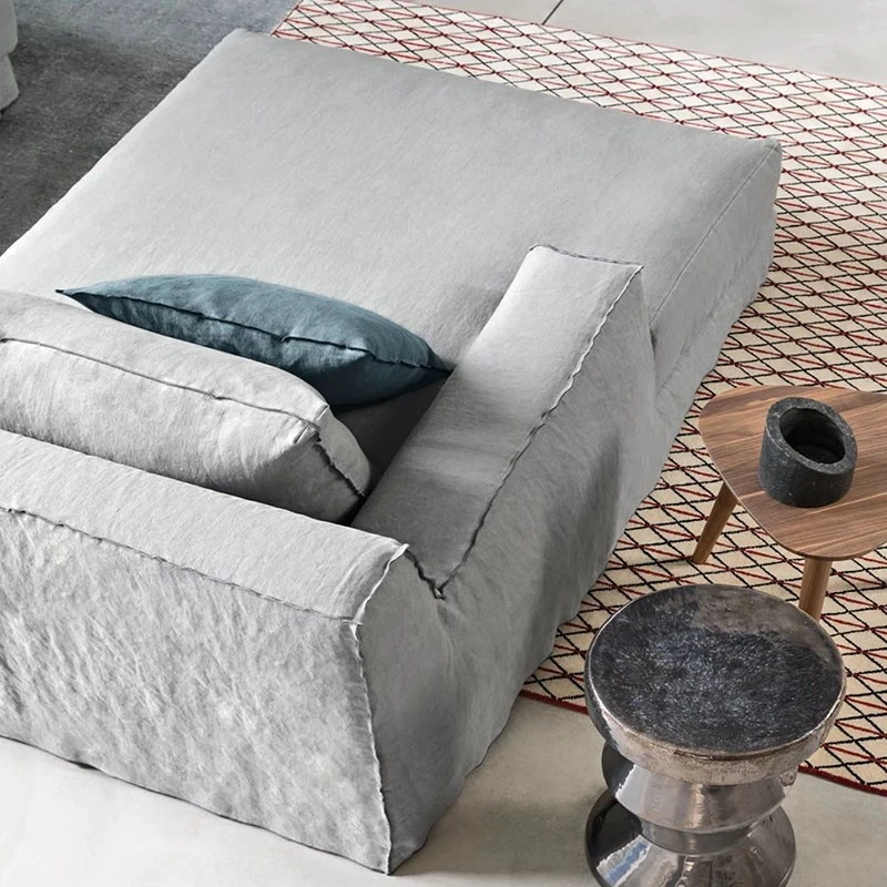 La dormeuse Loll Gervasoni fa parte dell’omonima collezione, particolare per i rivestimenti voluminosi e generosi e cucitura taglia e cuci. La struttura si cela al di sotto del tessuto e dell’imbottitura in poliuretano espanso. Una chaise longue/dormeuse componibile al divano moderno che si presta anche per arredare singolare o in coppia soggiorni moderni.