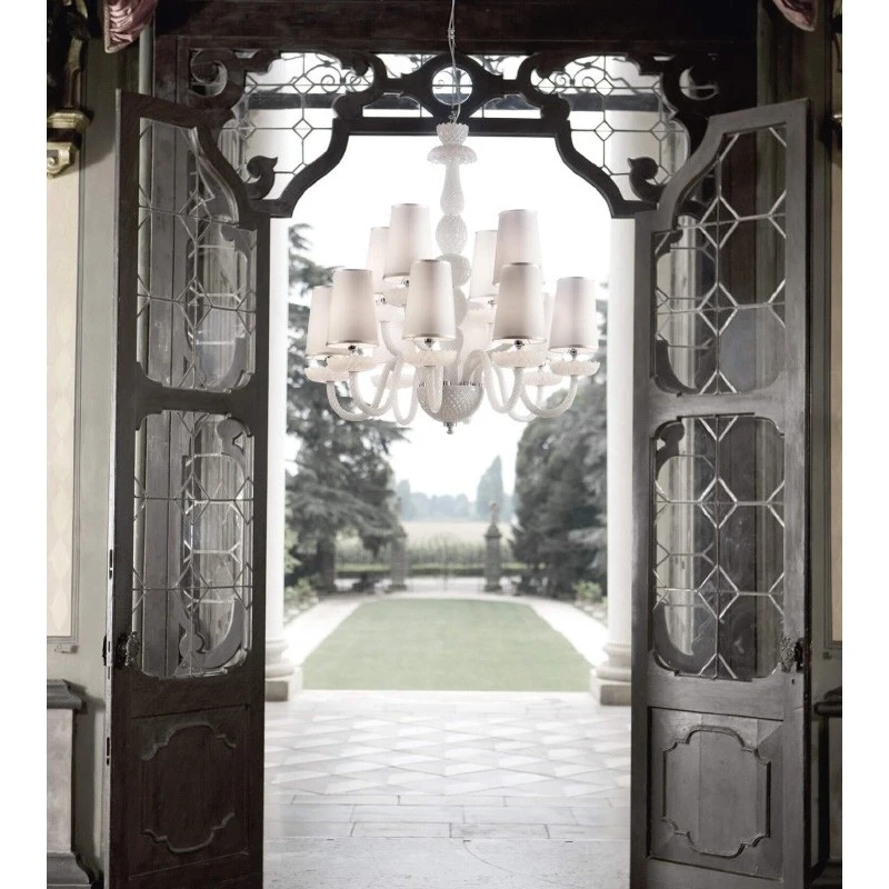 Lampada 284 Opera Italamp a sospensione, lusso ed eleganza la quale offre agli spazi, classe e raffinatezza pensate per arredare con stile il vostro salotto di design. Trattasi di una lampada a 1 fino a 3 livelli, con una struttura in metallo cromato e dei paralumi in tessuto bianco o nero. La lampada è adatta per ambienti salotti, sale da pranzo o sale ricevimento di alberghi. Inoltre, gode di illuminazione LED e dimmer Triac.