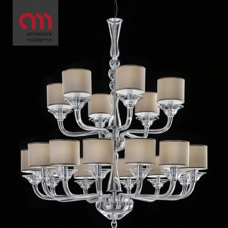 Lampada 434 Opera Italamp a sospensione, fascino classico e dinamismo adatti per arredare il proprio arredo hotel. Si tratta di una lampada a 1 o più livelli, con una struttura in metallo cromato e dei diffusori in tessuto beige o avorio. La lampada possiede dei bracci in cristallo i quali creano un’aria di pace all’interno dell’arredo. La collezione Opera è caratterizzata per il design classico ed elegante di lampade da soffitto, a sospensione, da parete, da tavolo e da terra.