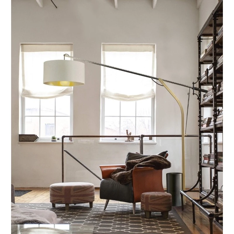 La lampada Aria Incanto di Italamp, creata dal designer Stefano Traverso, è un pezzo di arredo regolabile in altezza che combina eleganza e tecnologia. Presenta una struttura metallica con una varietà di finiture: una base cilindrica color nero opaco, un fusto in oro satinato e un’asta cromata. Il suo paralume, realizzato in tessuto avorio con un interno dorato, diffonde una luce morbida e accogliente. Questo articolo fa parte della collezione Incanto, che riflette la maestria di Italamp nella lavorazione del vetro e nella progettazione illuminotecnica.