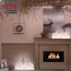 Kuusi Slide è una lampada da tavolo con un design innovativo. Riproduce delle abitazioni e un campanile dallo stile nordico. Kuusi è in grado di creare un’atmosfera calda e accogliente e, insieme alla lampada Kolme, è ideale per creare contesti invernali unici sia per vetrine di negozi, che per abitazioni private e ambienti contract. Questa lampada, inoltre, è bifronte, entrambe le facce, infatti, sono curate nei minimi dettagli e con disegni differenti, in questo modo il prodotto può essere posizionato su un mobile al centro di una stanza o sul davanzale di una finestra ed essere visibile da ambo i lati.