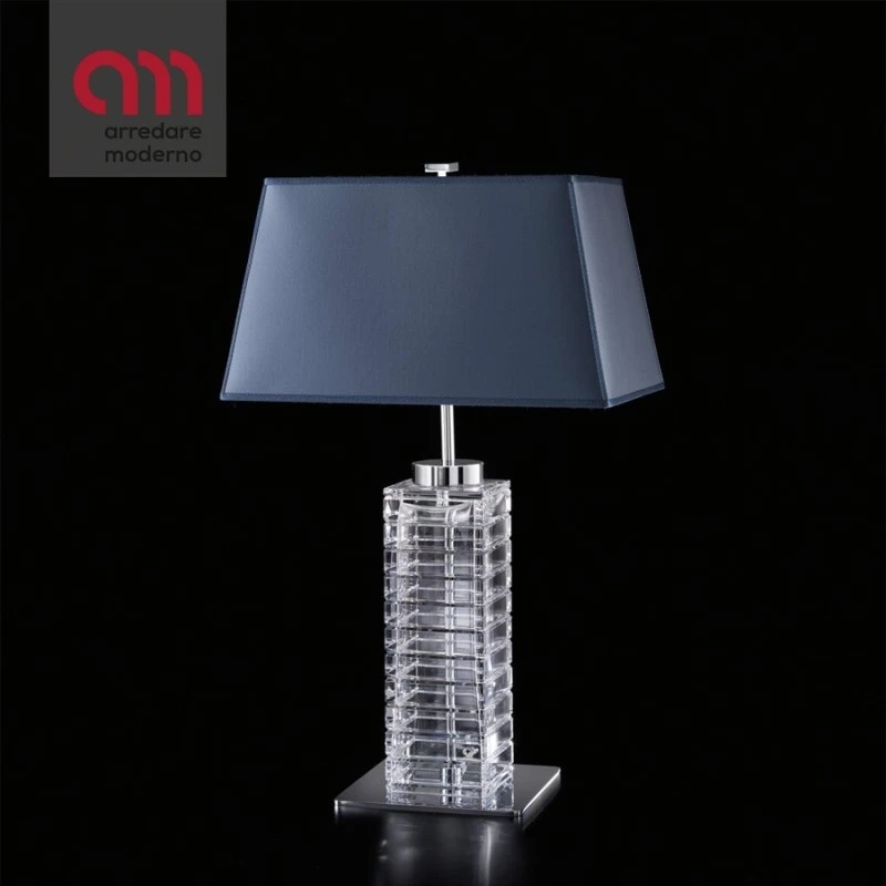 Edra Opera Italamp, lampada da tavolo è una lampada di design che combina il cristallo trasparente intagliato con il tessuto e il metallo. Ha una forma elegante e raffinata, con un diffusore in tessuto blu carta da zucchero e dettagli in metallo cromo. È disponibile in diverse varianti cromatiche, come puoi vedere nella scheda tecnica. La lampada ha una dimensione di 45 x 30 x 71 cm e una sorgente luminosa LED da 13W. Edra appartiene alla collezione di lampade dal design classico Opera, disponibile su Arredare Moderno.