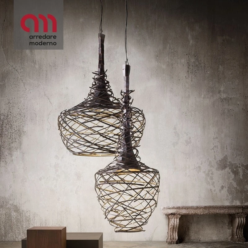Nest Elite To Be è una lampada moderna a sospensione dal design unico, infatti, si ispira, come dice il nome stesso, ai nidi degli uccelli. Realizzata in ferro intrecciato a mano, è disponibile nella finitura bronzo antico e in diverse dimensioni. Anche come lampadario di design, può essere una soluzione perfetta per illuminare anche la zona giorno in stile industrial o rustico. Per ristoranti di lusso, enoteche, Nest è disponibile in due versioni.
