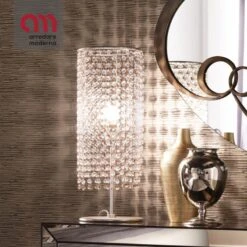 La lampada Gioia di Cantori è una lampada da moderna con pendenti in vetro disponibile nelle versioni da comodino, da terra o da tavolo. La struttura è rifinita e realizzata a mano; il paralume, realizzato con pendenti di vetro a due colori tagliati diamante e montati a mano, regalano un gioco di luci unico alla sala e alla camera da letto. Una lampada da comodino dal gusto eclettico, perfetta sia per un arredamento classico che moderno.