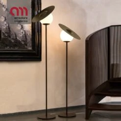 Una lampada che fa del minimalismo la propria caratteristica principale, permettendole di fondersi al meglio con qualunque spazio la circondi. Una figura chiara, nella versione bronzo pietra. Design elegante.