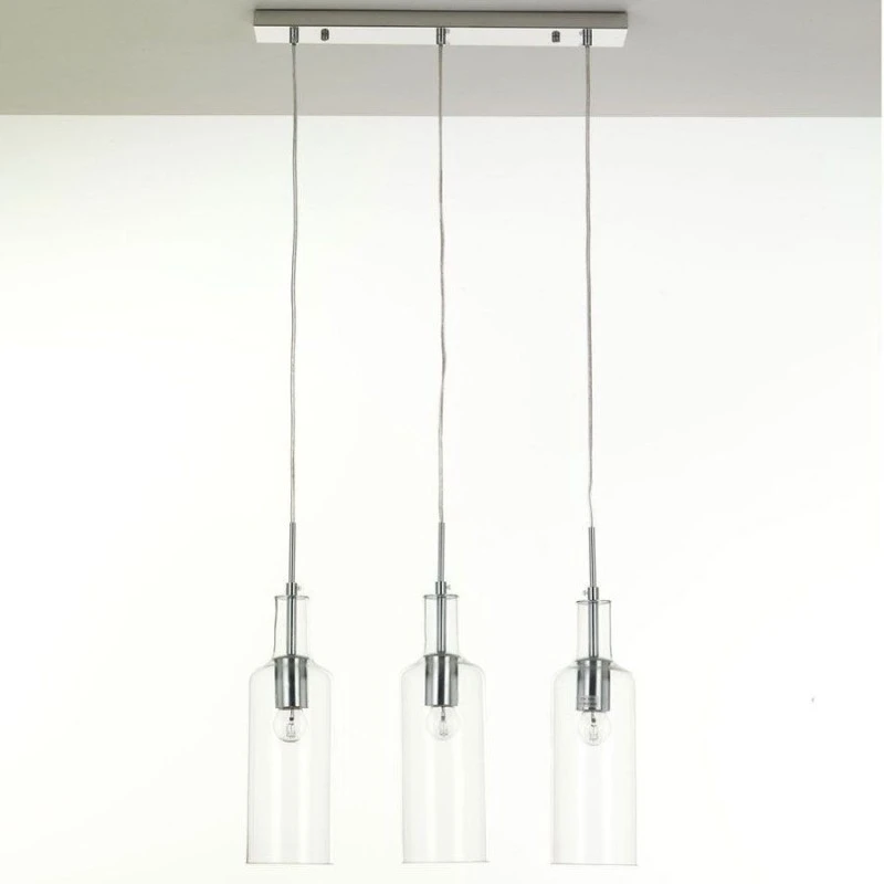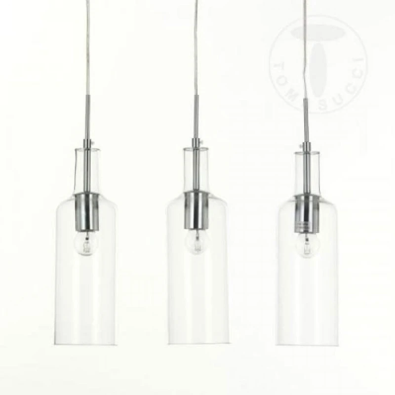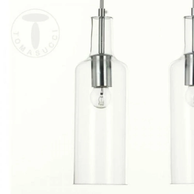 Lampadario 3 luci Bottles Tomasucci, con paralume realizzato in vetro trasparente cm.H34 Ø10 e filo elettrico cm.70 (regolabile). Predisposto per nr.3 lampadine E27 max 40W (non in dotazione).