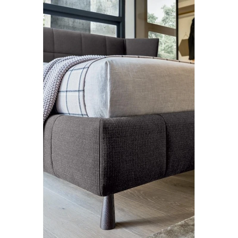 Gaber di Felis è un letto dalla forte presenza e personalità, caratterizzato da una testiera fasciante ed un giroletto imbottito, con cuciture in grado di creare un ritmo visivo avvolgente, diventerà il protagonista indiscusso in ogni ambiente notte.