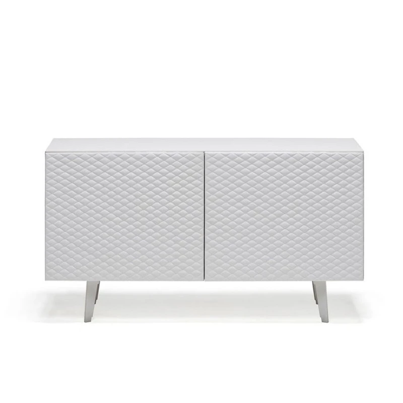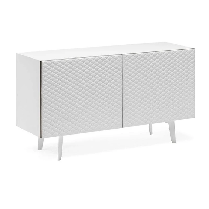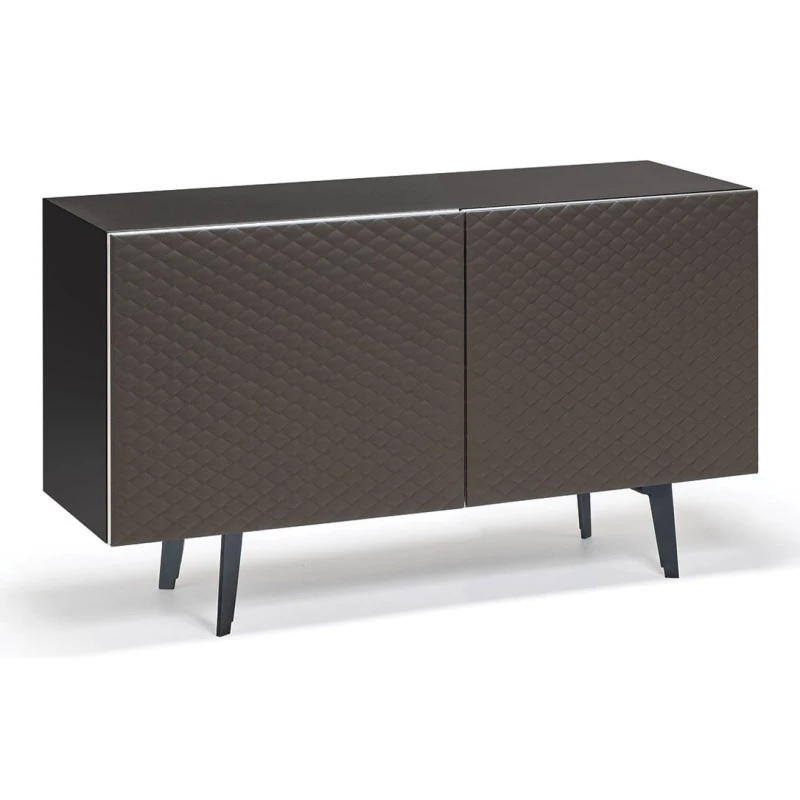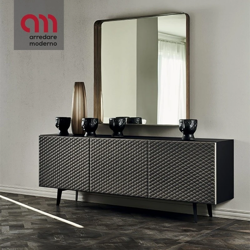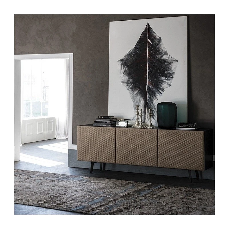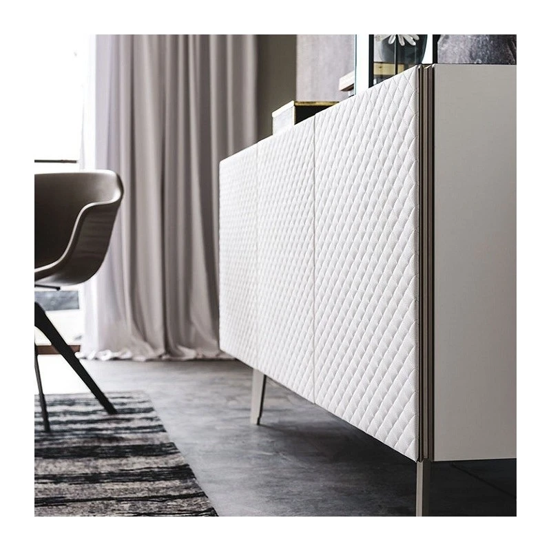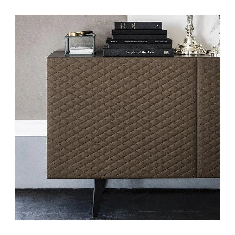 Le ante della madia Absolut Cattelan Italia sono rivestite in diverse finiture di pelle o ecopelle trapuntata. Profili in alluminio verniciato titanio goffrato.