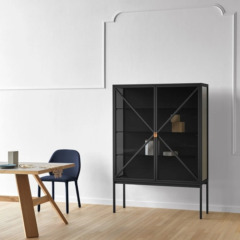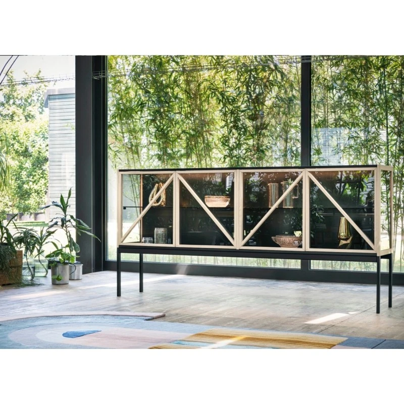 La Madia Kramer si distingue per il suo design scultoreo e dinamico, caratterizzato da ante decorate con motivi geometrici tridimensionali, che creano un interessante gioco di luci e ombre. È dotata di ampie ante a battente, che nascondono vani spaziosi e ben organizzati. All’interno, ripiani regolabili consentono di ottimizzare lo spazio per riporre stoviglie, libri, oggetti decorativi o dispositivi elettronici. Perfetta per chi desidera un mobile che sia pratico e al tempo stesso un elemento di design iconico, Kramer arricchisce qualsiasi spazio con la sua presenza sofisticata e moderna.