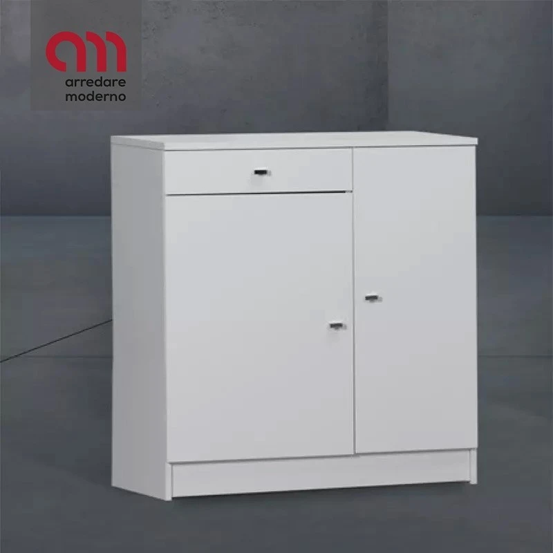 Mobile bagno con 2 ante e 1 cassetto, completamente realizzato in legno truciolare nobilitato bianco lucido.