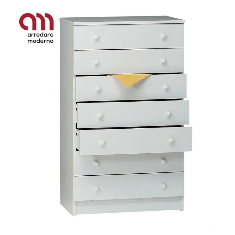 Struttura e cassetti in legno nobilitato sp. 16mm, profilo squadrato, guide cassetto in plastica. Pomoli in colore struttura.