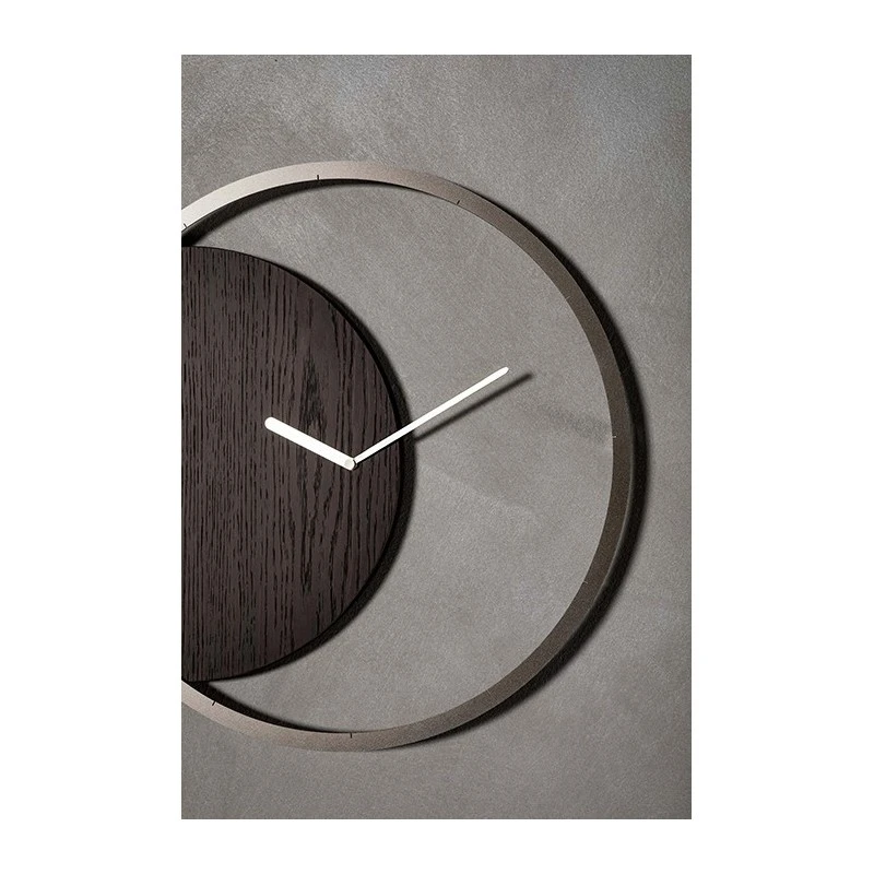 - struttura in metallo laccato bronzo pietra/lancette oro satinato e pannello in legno rovere scuro termotrattato.