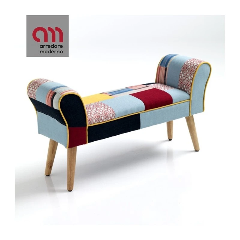 Design lineare abbinato ad una struttura resistente. Il rivestimento in tessuto con tecnica patchwork la rende ideale per arredare con uno stile vivace la zona living.