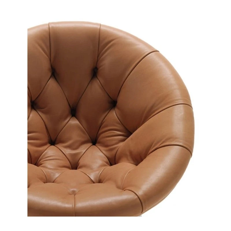 La poltrona Nest One Désirée ripropone nella forma un “nido familiare”. La lavorazione capitonè caratterizza la parte interna, invece, esternamente ha un superficie liscia. Una struttura di tubolare in acciaio satinato sospende il guscio. Rivestita in tessuto o pelle.