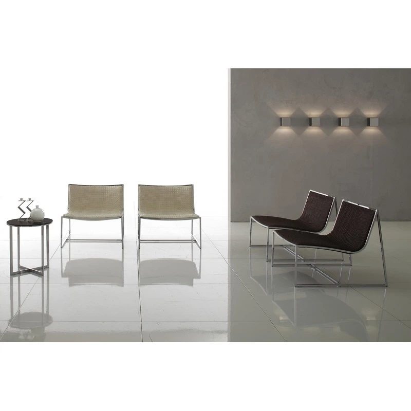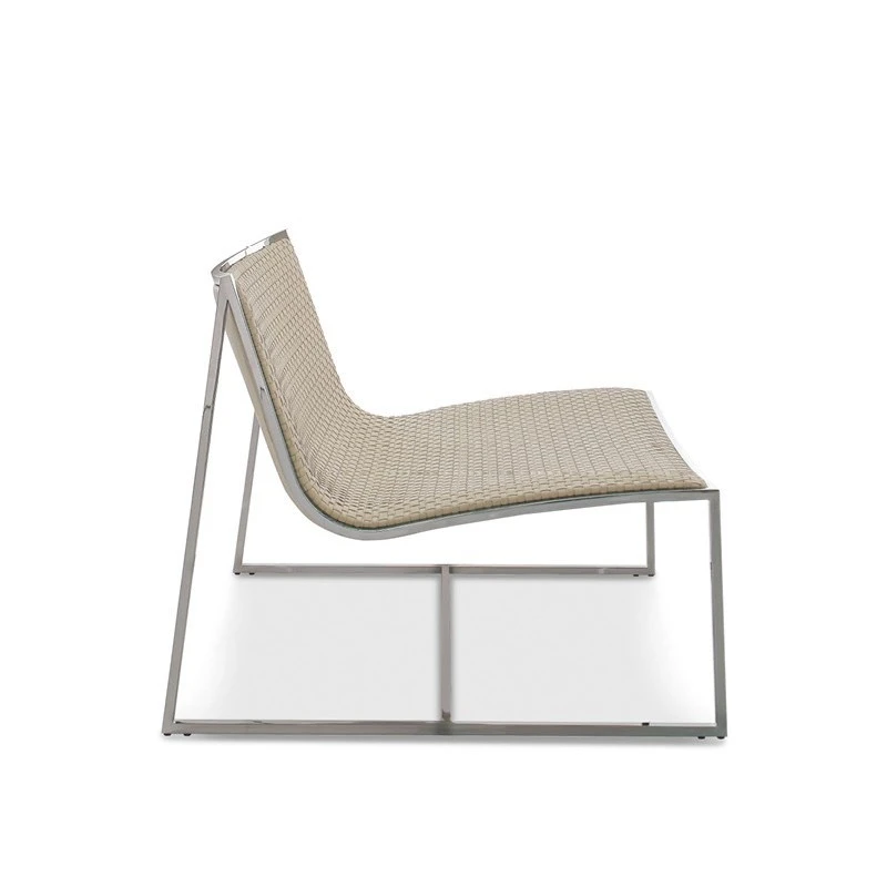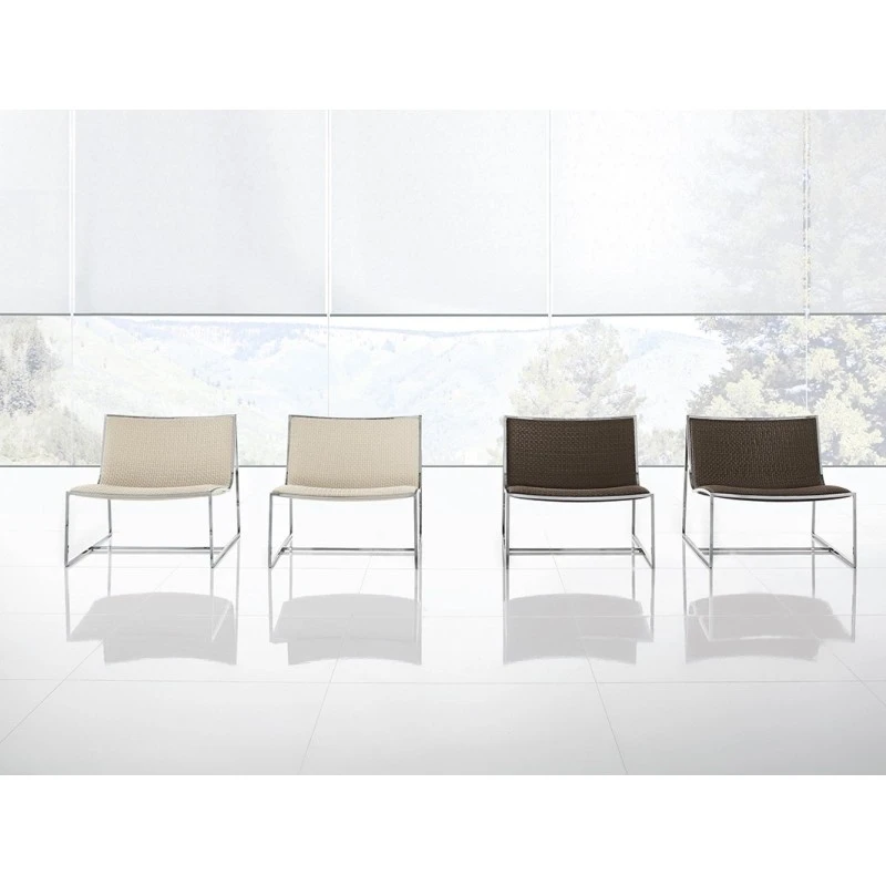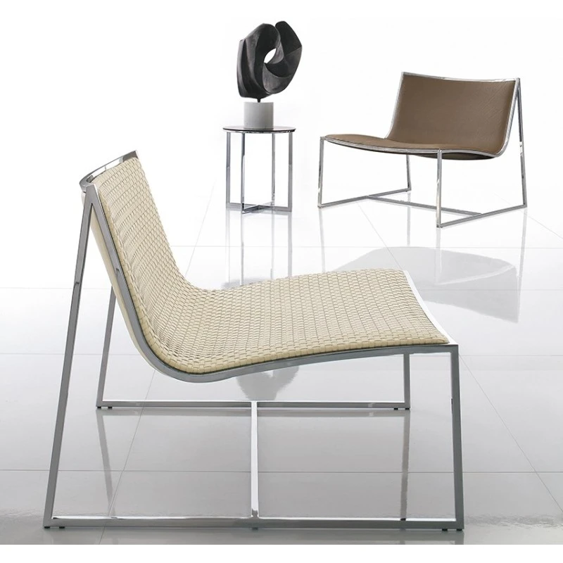 La poltrona Samoa Alivar di stile moderno si distingue per la sua linea sinuosa di seduta e schienale in pelle liscia o nella versione con trama intrecciata in contrasto con il rigore della base a squadra in tubolare di acciaio, disponibile in diverse finiture. Dalle dimensioni di una sedia lounge, Samoa è perfetta per una area living moderna oppure per sale d’attesa di uffici e sale riunioni.