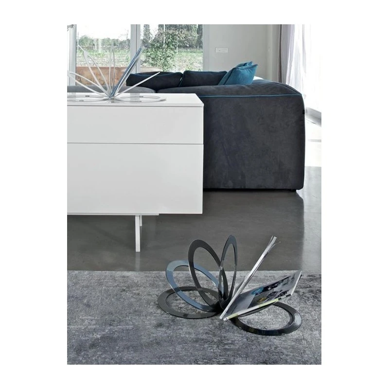 La struttura del portariviste Fan Bontempi è realizzata in diverse tonalità di acciaio laccato: