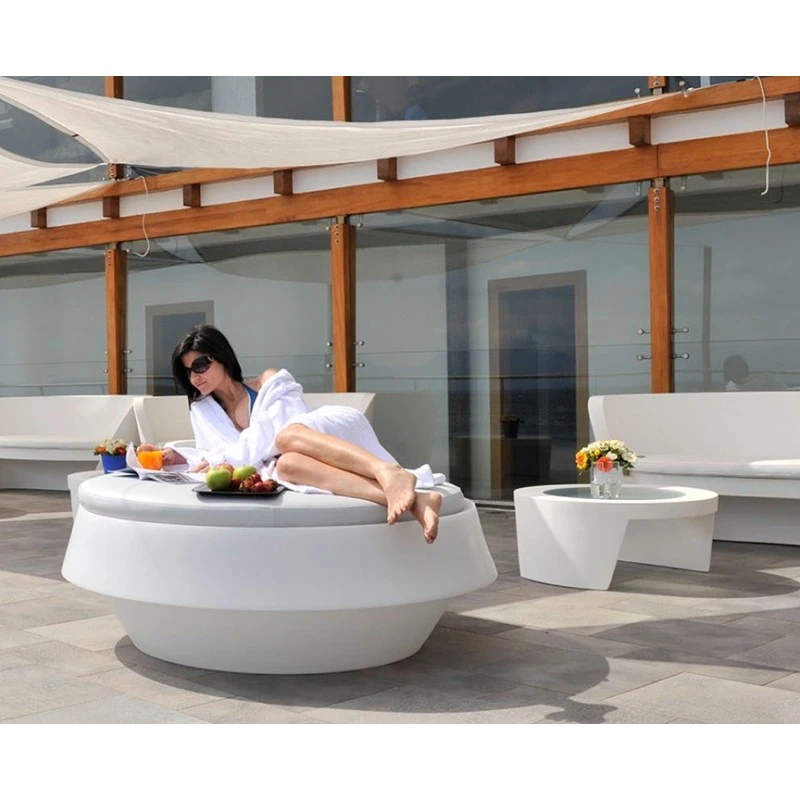 Il pouf Giò Bed Slide ha un design molto semplice, si caratterizza per lo più per la sua forma tonda. Il cuscino in ecopelle rende la sua seduta comoda e rilassante. Viene realizzato in polietilene nella finitura luminosa bianca. Le sue dimensioni notevoli lo rendono utlizzabile non solo some pouf ma anche come lettino, così come ci ricorda anche il suo nome. Può essere utilizzato ache negli ambienti esterni, grazie ai materiali resistenti agli agenti atmosferici di cui è fatto.