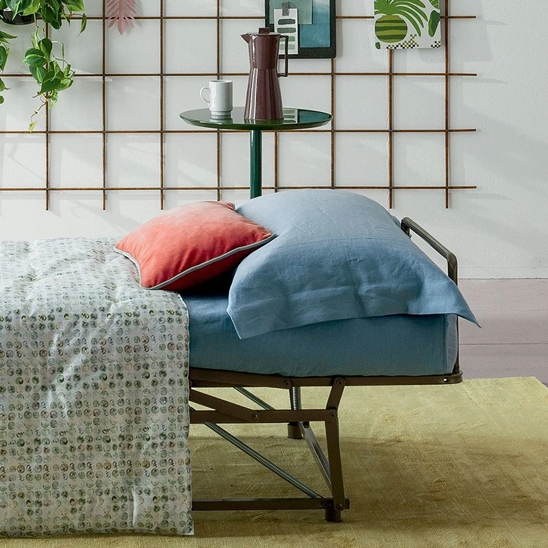 Pouf trasformabile imbottito in poliuretano espanso, rivestito con tessuti nelle seguenti categorie: