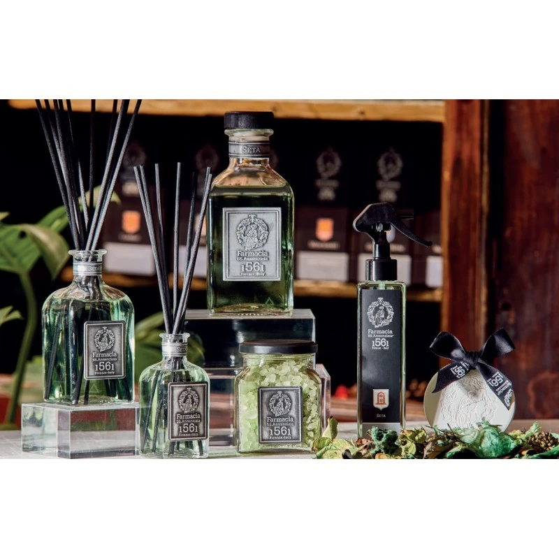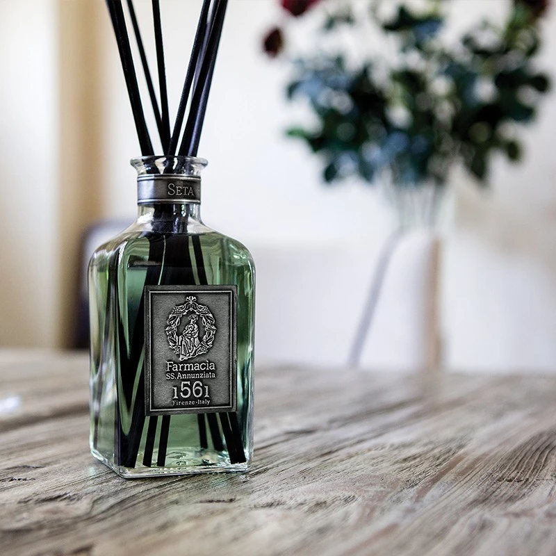 Diffusore per ambiente fragranza Seta della Farmacia SS Annunziata, pensato per arricchire gli ambienti con una fragranza delicata ed avvolgente. Le note olfattive sono armoniose e sofisticate, con un equilibrio tra freschezza floreale e calde sfumature orientali, spirate alla seta evocano sensazioni di morbidezza, freschezza e lusso.