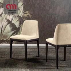 Sedia con base in legno e struttura in schiumato a freddo su cui poggia una seduta rivestita in pelle o in ecopelle a seconda delle proprie esigenze. La forza del materiale si unisce al design di Gilda, che denota eleganza e carattere.