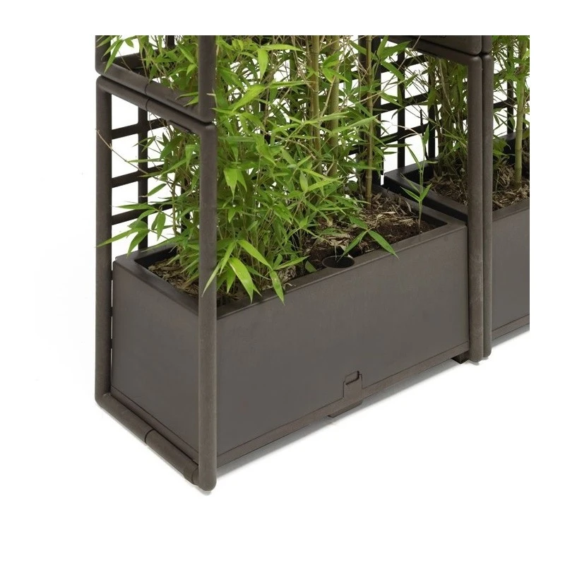 Il Separè Sipario 2 Nardi è caratterizzato da un disegno a rete moderno, formato da due elementi grigliati facilmente impilabili senza l’uso di viti e da un vaso contenitore per piante autoirrigante. La sua struttura autoportante consente di dividere gli spazi esterni in diverse combinazioni creando allo stesso tempo un giardino urbano per un’atmosfera piacevole e rilassante.