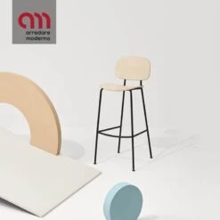Lo sgabello Tondina bar stool ha una struttura in acciaio cromato o verniciato con schienale e seduta in legno multistrato di rovere di altissima qualità e conforme alle ultime direttive europee.