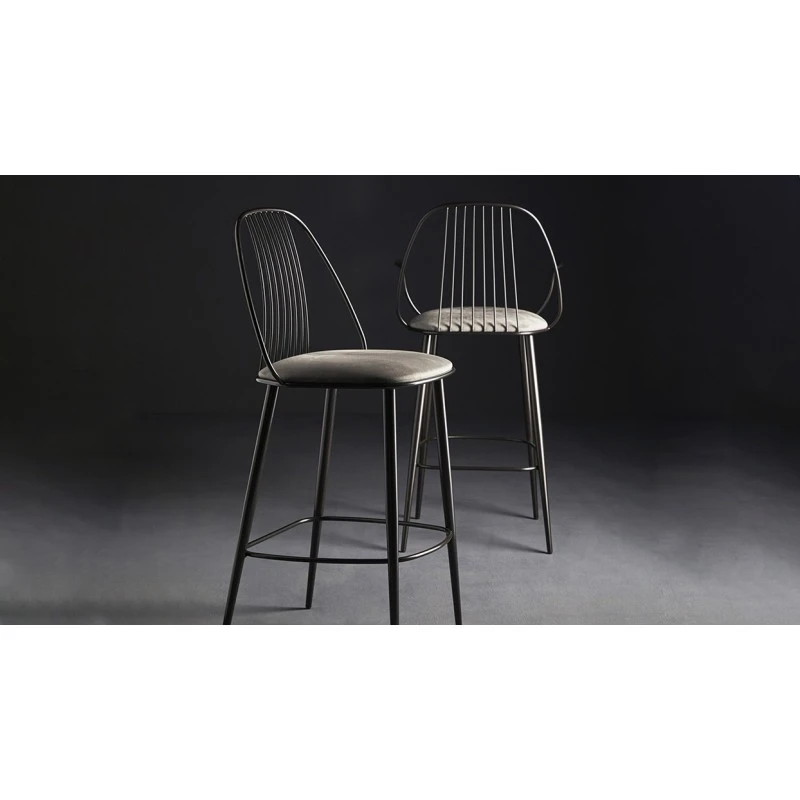 Sgabello con struttura in tondino di acciaio e seduta rivestita in ecopelle. Disponibile nelle seguenti finiture di colore: