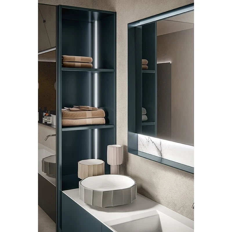 Frame Metallo, specchio per bagno con illuminazione LED inclusa ideale per abbellire il proprio bagno. La schiena è fabbricata in vetro o legno in numerose finiture. Inoltre, sono disponibili diverse dimensioni in modo da soddisfare le richieste d’arredo più esigenti. Edoné è disponibile online su Arredare Moderno.