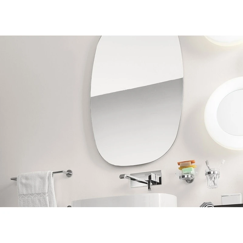 Specchio sagomato senza telaio con attacco a muro, reversibile.