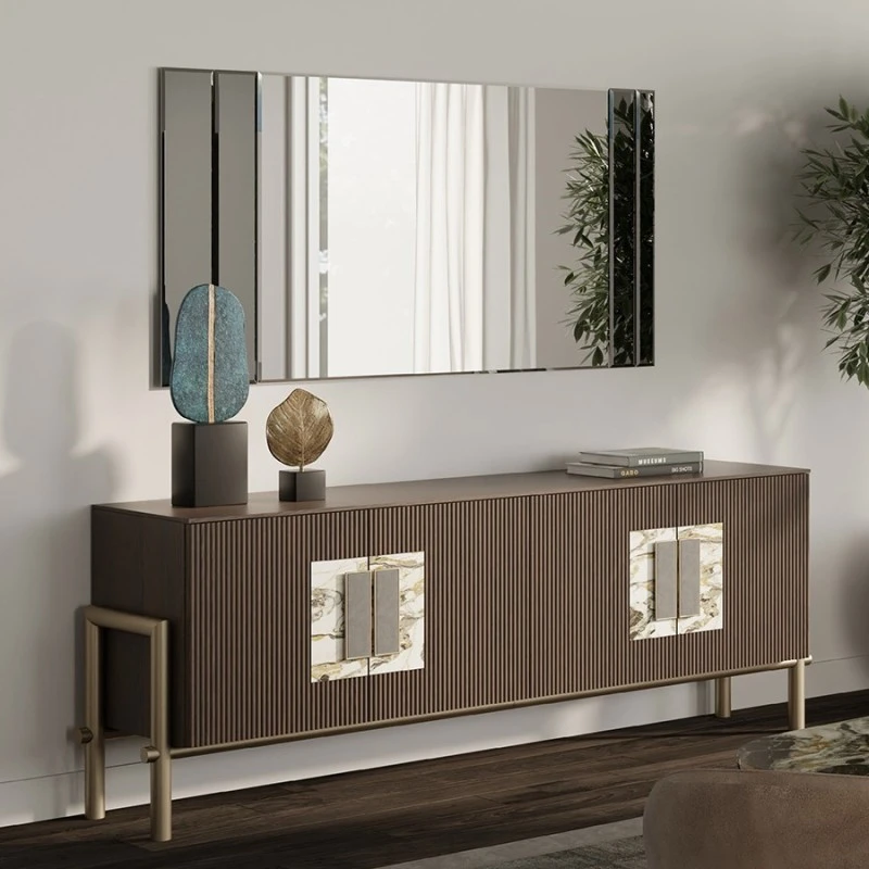 Lo Specchio Ivo di Zamagna Italia è un complemento d’arredo elegante e funzionale, ideale per arricchire ambienti moderni con un tocco di raffinatezza. Caratterizzato da una cornice in vetro bronzato, questo specchio rettangolare crea un gioco di riflessi che dona profondità e luminosità agli spazi interni. Le linee pulite e il design minimalista lo rendono adatto a diverse collocazioni, come ingressi, soggiorni o camere da letto, integrandosi armoniosamente con vari stili di arredamento.