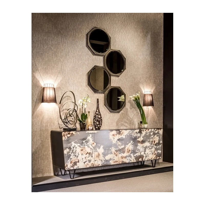 Lo specchio rotondo o ovale è argentato a doppio fondo e molato. La cornice ottagonale e in ferro pieno battuto a mano. La specchiera Marylin può essere appesa sia in verticale sia in orizzontale.