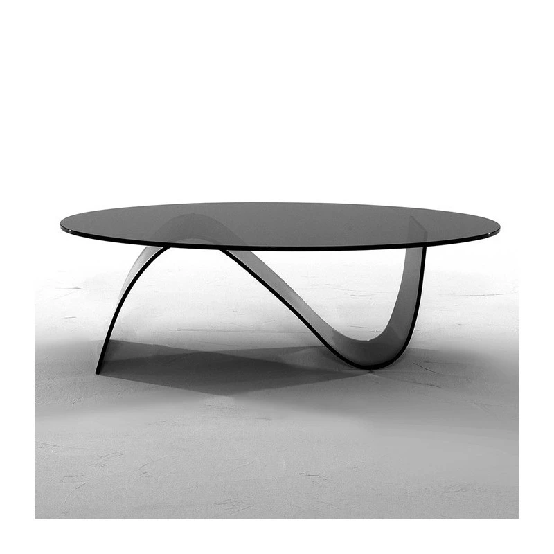 Il vetro curvato è la materia sulla quale si fonda Alissa, tavolino dalla forma leggera e delicata, declinabile in diverse finiture di colorazione.