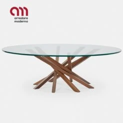 Atari Cattelan Italia è un tavolino con con base in massello tinto noce Canaletto o noce tinto rovere bruciato. Il piano in cristallo trasparente è in appoggio sulla base in legno, è proposto rotondo, quadrato o rettangolare. Il modello rettangolare presenta due basi simmetriche che sorreggono il piano.