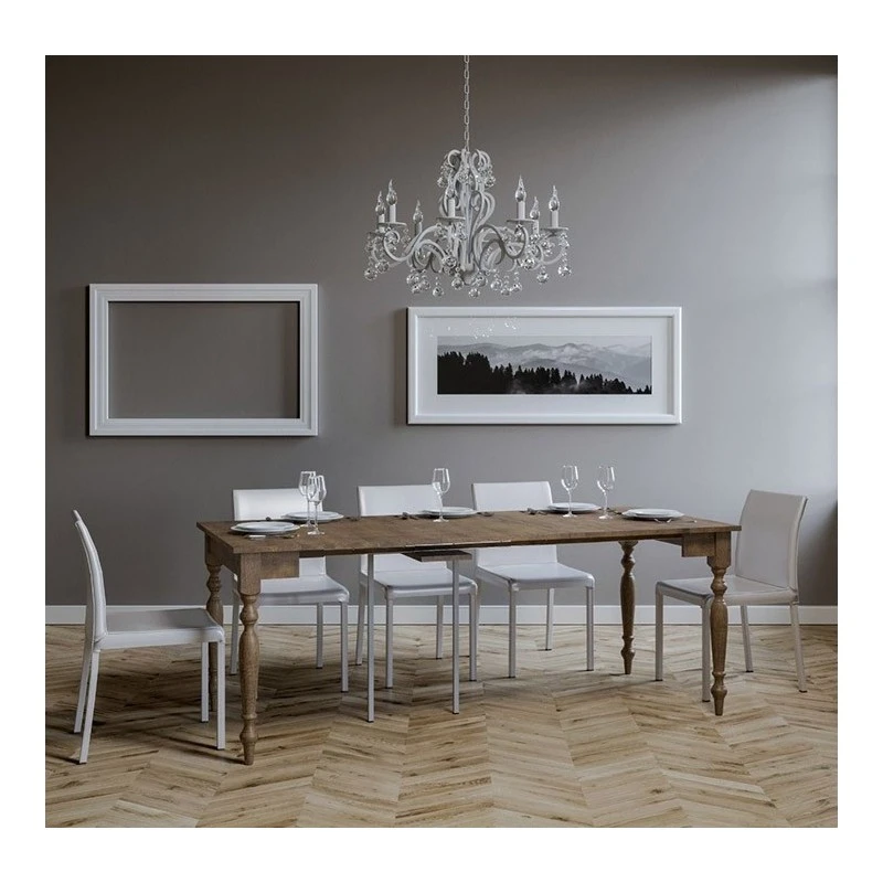 - Romagna – L.90 cm x P. 48 cm x H. 77 cm, allungabile fino a 308, con 5 prolunghe (52 cm x 90 cm ciascuna)