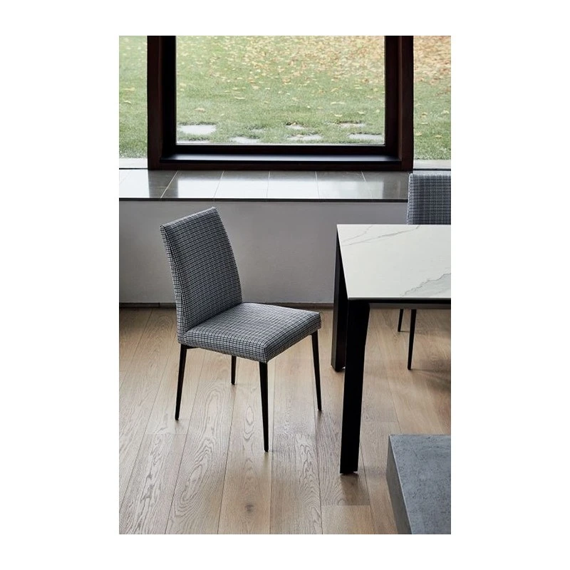 Tavolo Mirage Bontempi Casa si presenta con una struttura composta da gambe e telaio in alluminio laccato in diverse finiture, che vanno a sostenere un piano quadrato fisso disponibile in ceramica, cristallo o marmo.