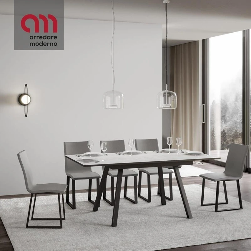 Mirhi di Itamoby è un tavolo allungabile per un soggiorno o una cucina di design. Geometria moderna e dinamica delle gambe leggermente inclinate. Piano e allunghe presentano una raffinata bordatura antracite. Utile per chi ha poco spazio in casa ma al contempo ama fare cene con amici , poichè, in poche e semplici mosse, può trasformarsi in un grande tavolo allungabile, disponibile in due dimensioni.