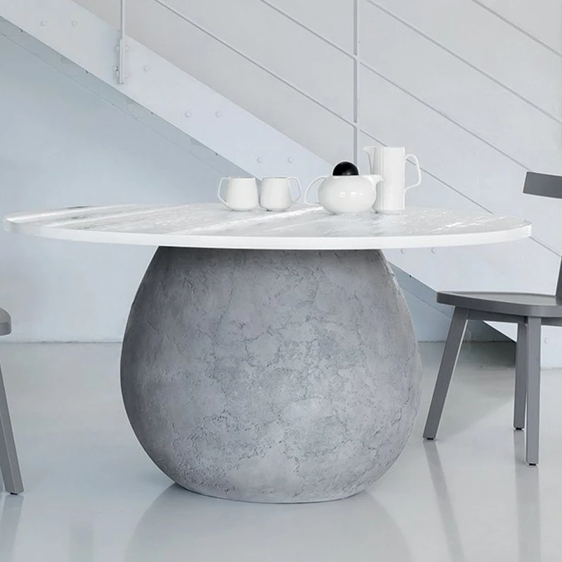 Il tavolo rotondo Next 232 di design moderno by Gervasoni è versatile e si distingue per la forma voluminosa, piena e tondeggiante. Disponibile con piano tondo in mamrmo da 140 e 160 cm che poggia su una base scultorea centrale dalla forma piena in cemento GFRC color grigio opaco. Un tavolo salotto, un tavolo cucina moderno, ma anche un tavolo per esterni per arredare terrazzi e giradini.
