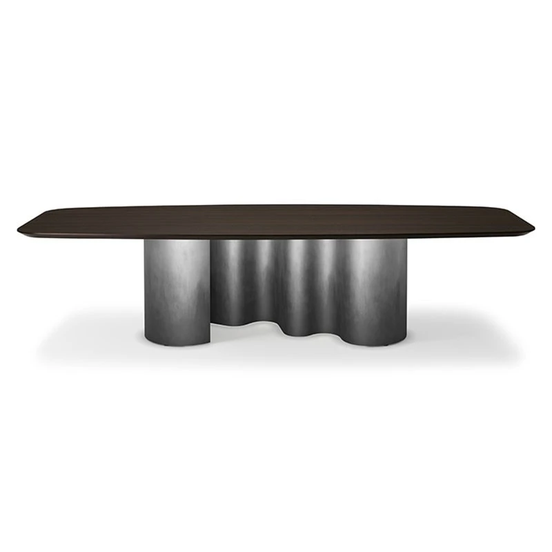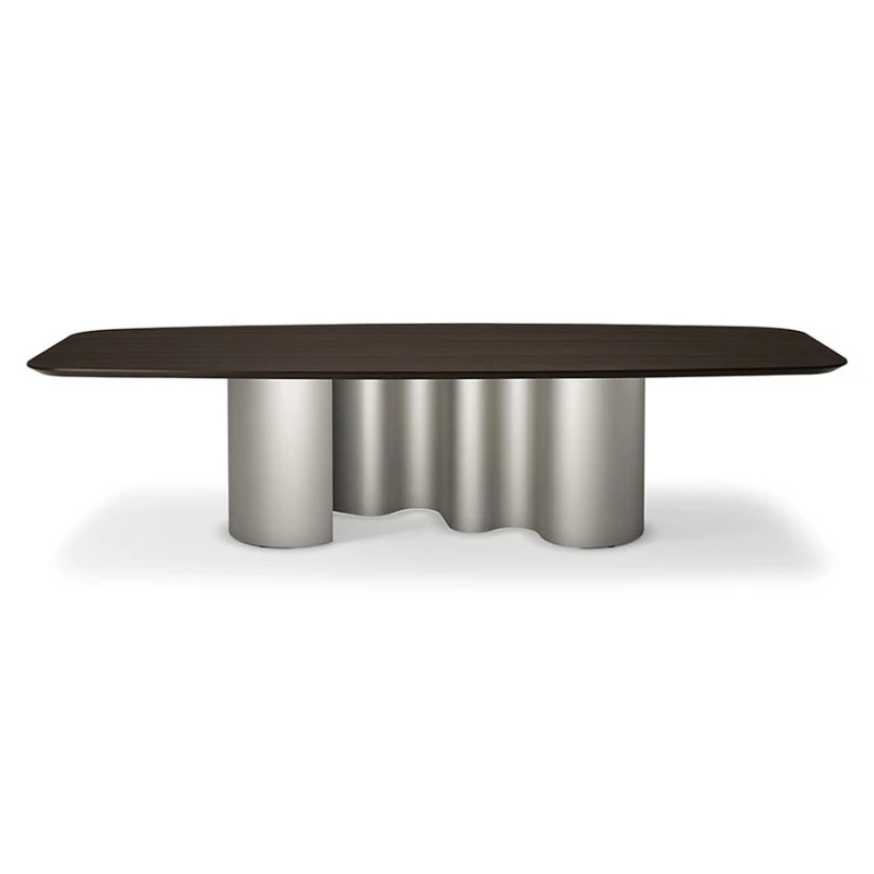 Papel Wood, complemento di arredo per arredare la sala da pranzo con stile moderno e minimalista. Viene realizzato con base in acciaio e piano in legno: materiale elegante, raffinato e di altissima qualità. La base in metallo curvato viene realizzata in un pezzo unico, caratteristica che aumenta il prestigio di questo tavolo da pranzo moderno.