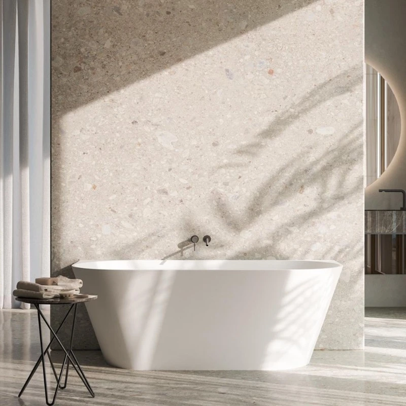 La struttura realizzata è realizzata in mineraLite, ovvero miscela di quarzo caratterizzata per la sua durezza e stabilità, dotata di resine minerali e poliestere ad alte prestazioni, estremamente resistente e rifinita a mano.
