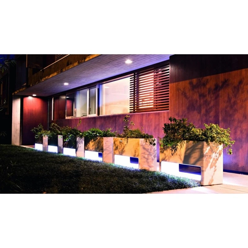 Lluna Illuminabile, vaso Serralunga dal design moderno e versatile. La struttura è realizzata in polietilene stampato in rotazionale nelle finiture standard o laccato. Lluna può adattarsi facilmente a spazi d’arredo di terrazzi, zone esterne, locali pubblici e anche bordo piscina. Inoltre, è incluso il kit di drenaggio per l’acqua. Il marchio Serralunga è specializzato nei prodotti d’arredo per outdoor.